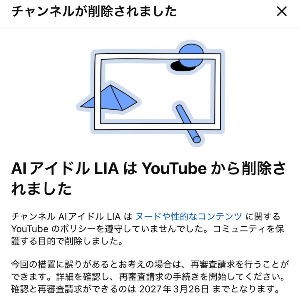 もともと2025年12月に収益化停止されていたので、いつかは動画削除しなきゃと思っていたのですが、先にチャンネルごと削除されちゃいました。